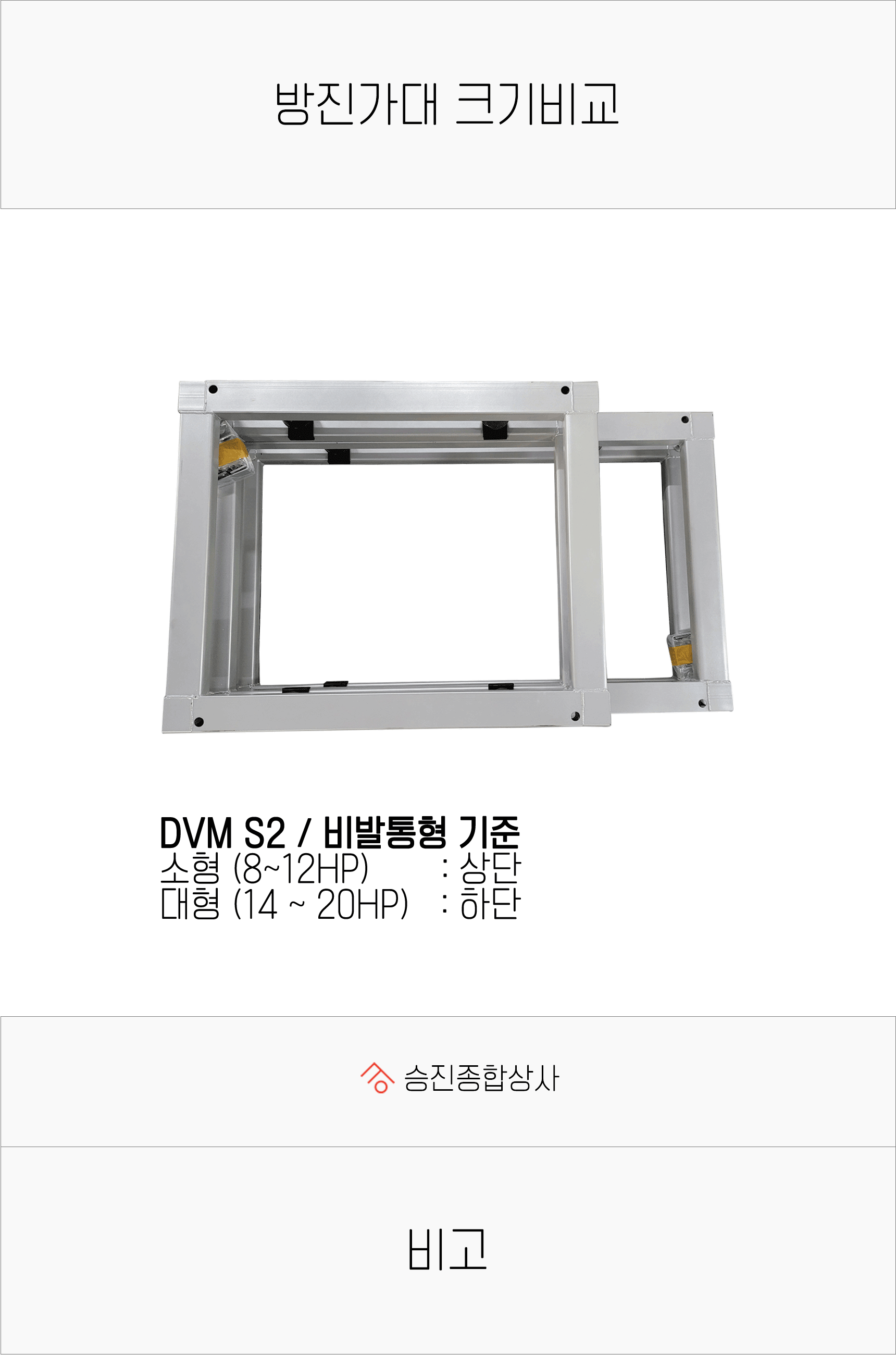 - 방진 가대 크기 및 실외기 고정을 위한 구멍의 위치가 다릅니다.