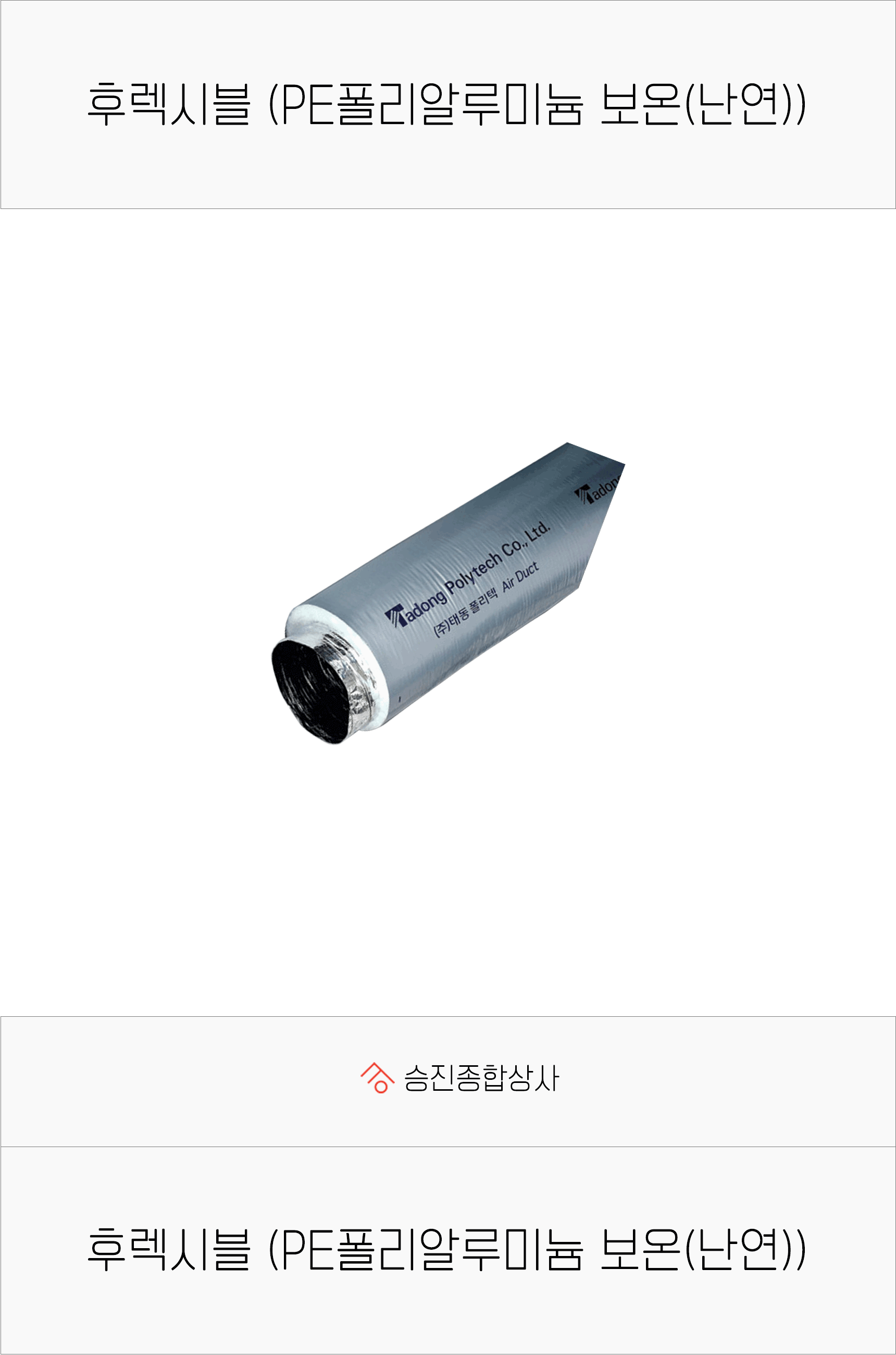 | 후렉시블(난연) (PE폴리알루미늄 보온) | 150 Φ | 태동폴리텍 DS인더스트리 |