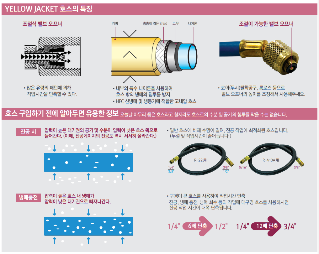 | 16248 (R-22 용) | 1/4" x 3/8" | 진공시간 약 30 % 단축 |