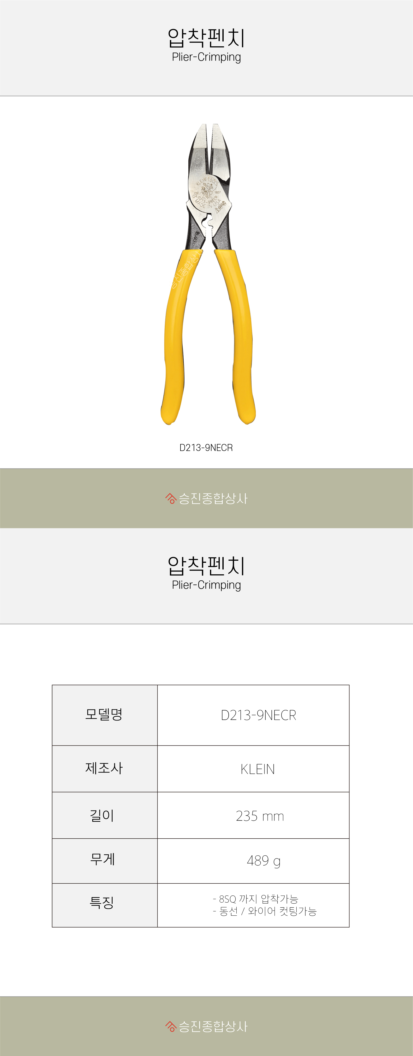 클라인 9인치 압착펜치